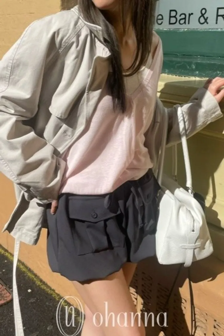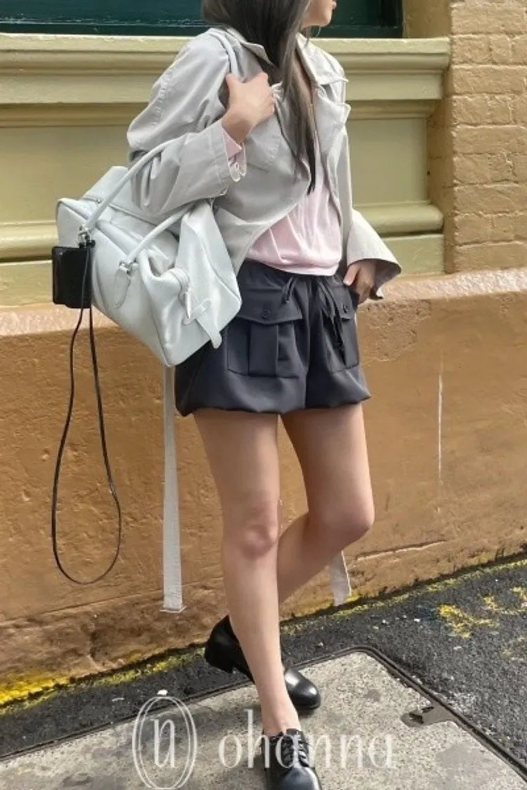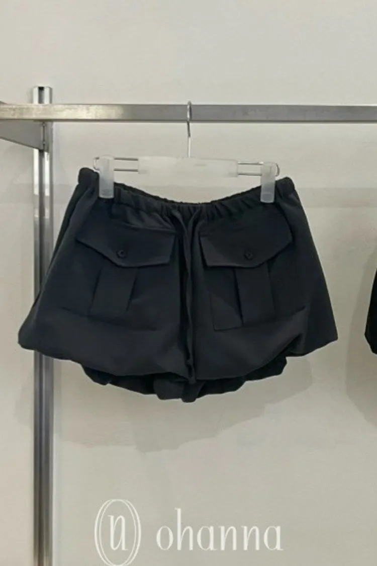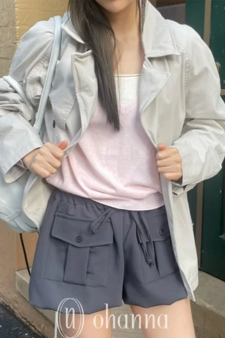 M044深灰色前口袋綁帶短褲