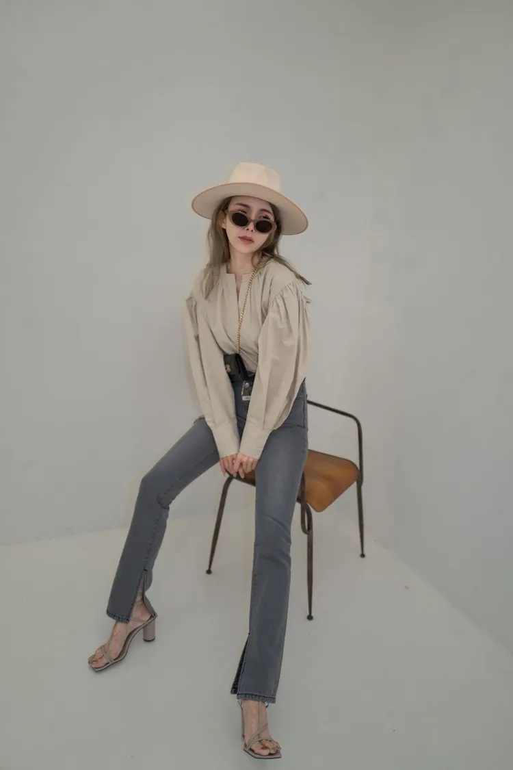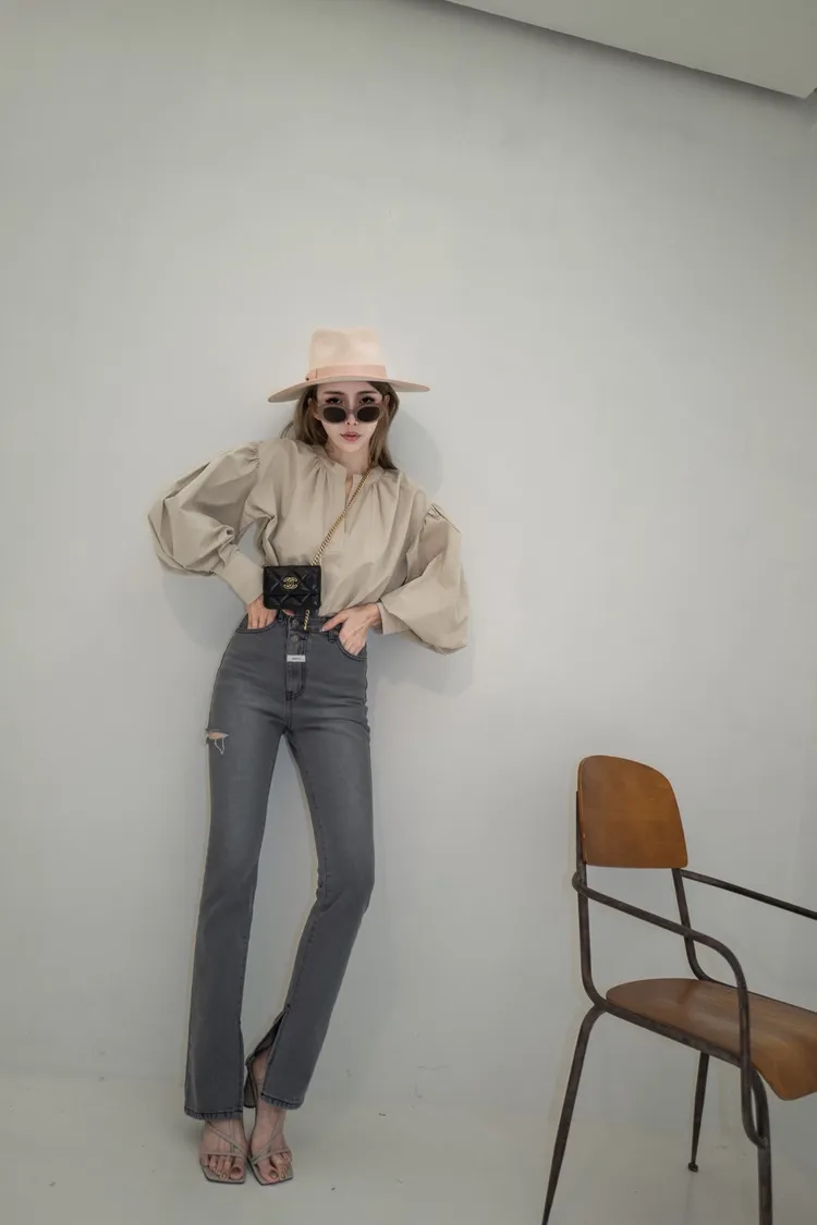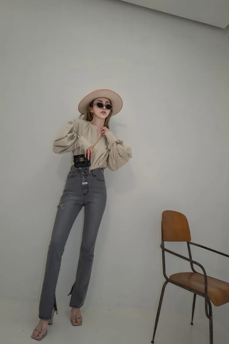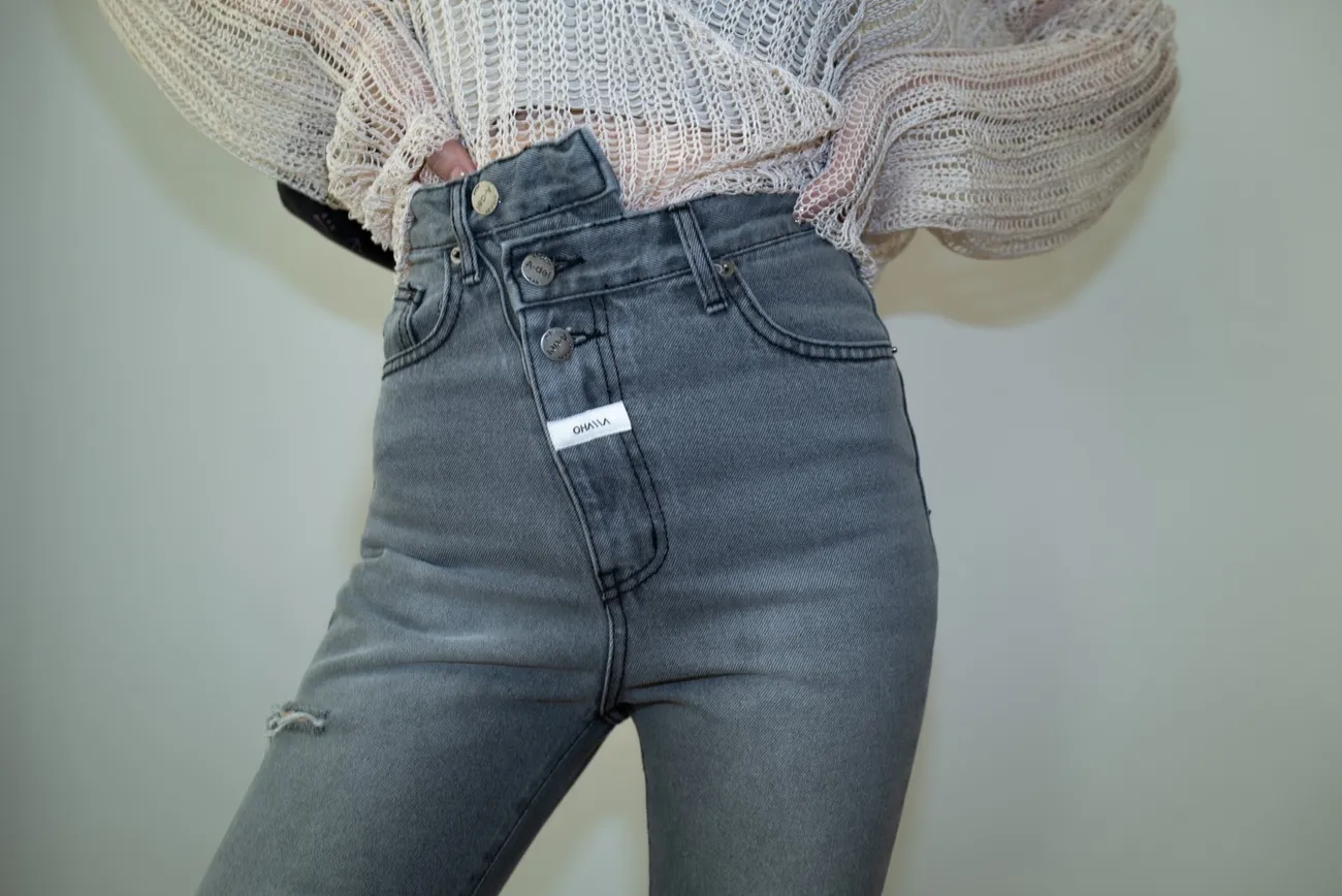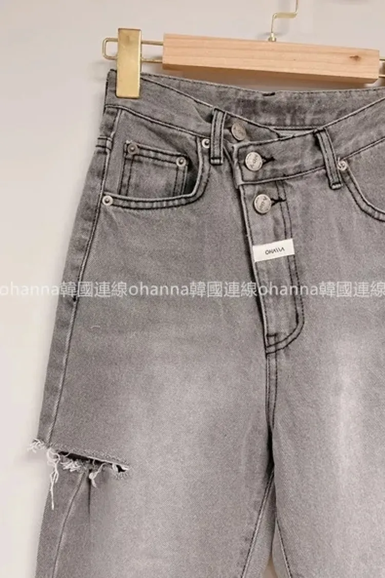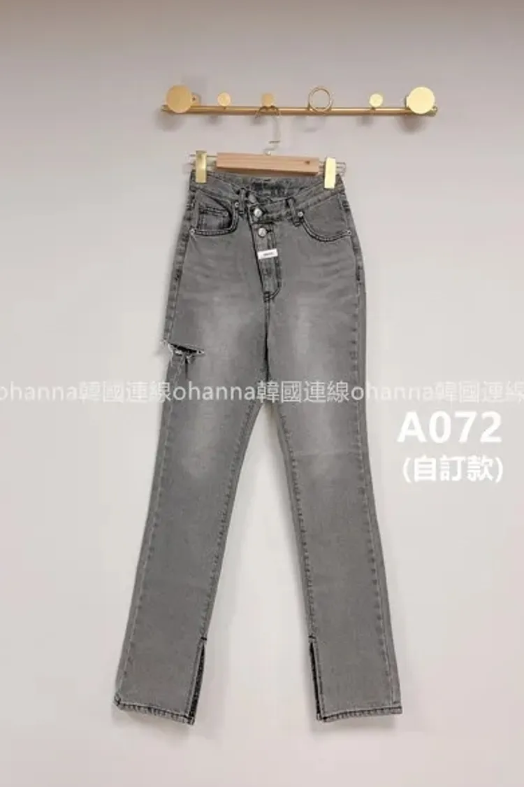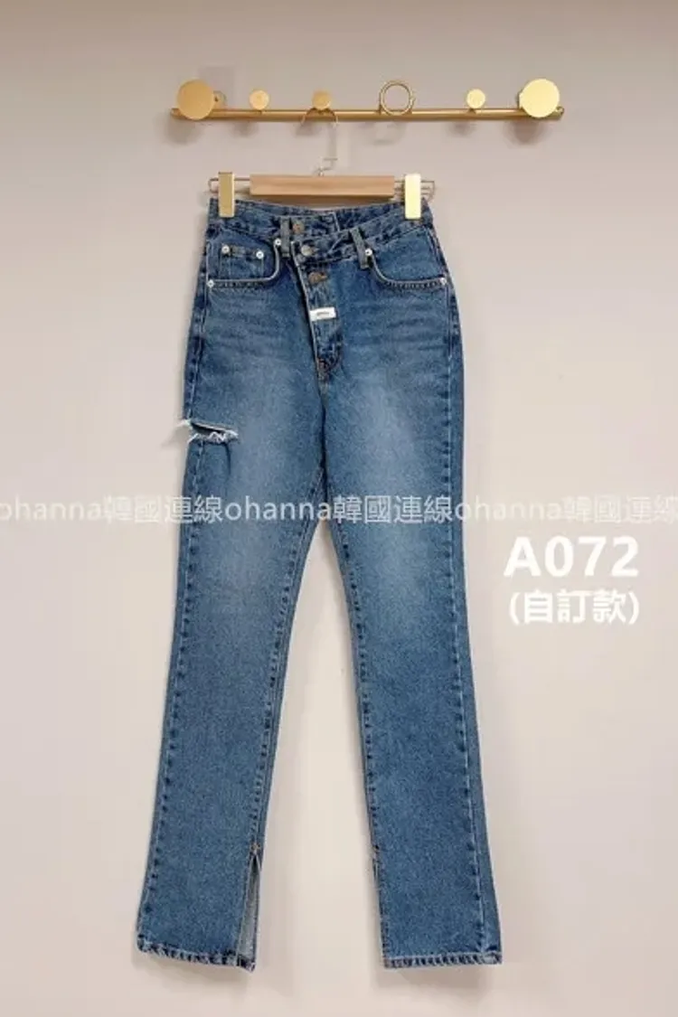 A072(自訂款)不對稱褲頭側割破牛仔褲