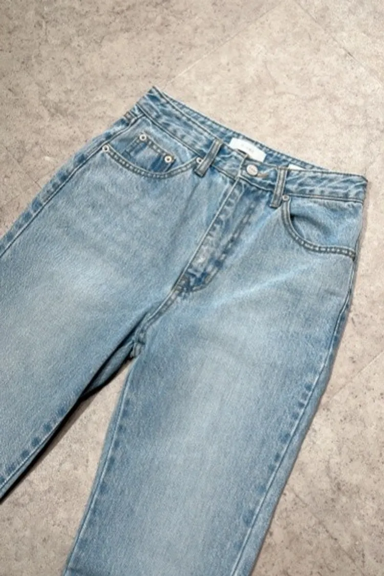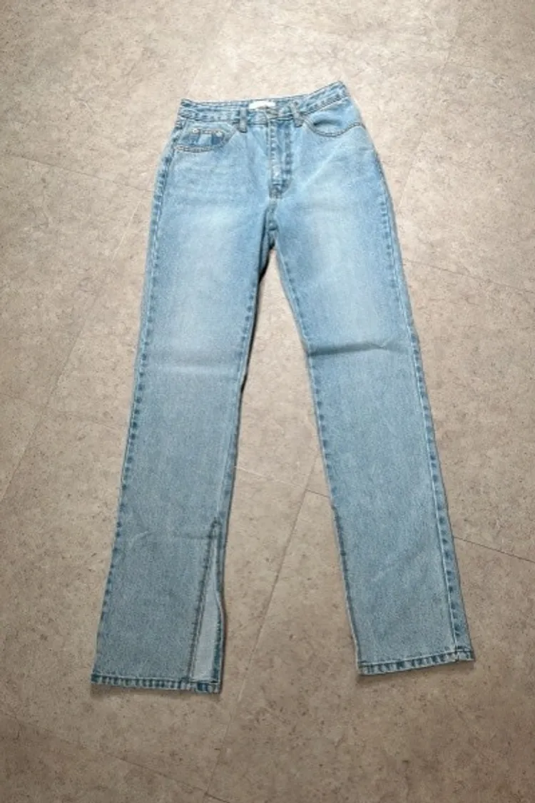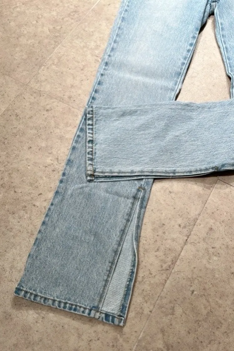 P012淺藍素面內開叉牛仔褲