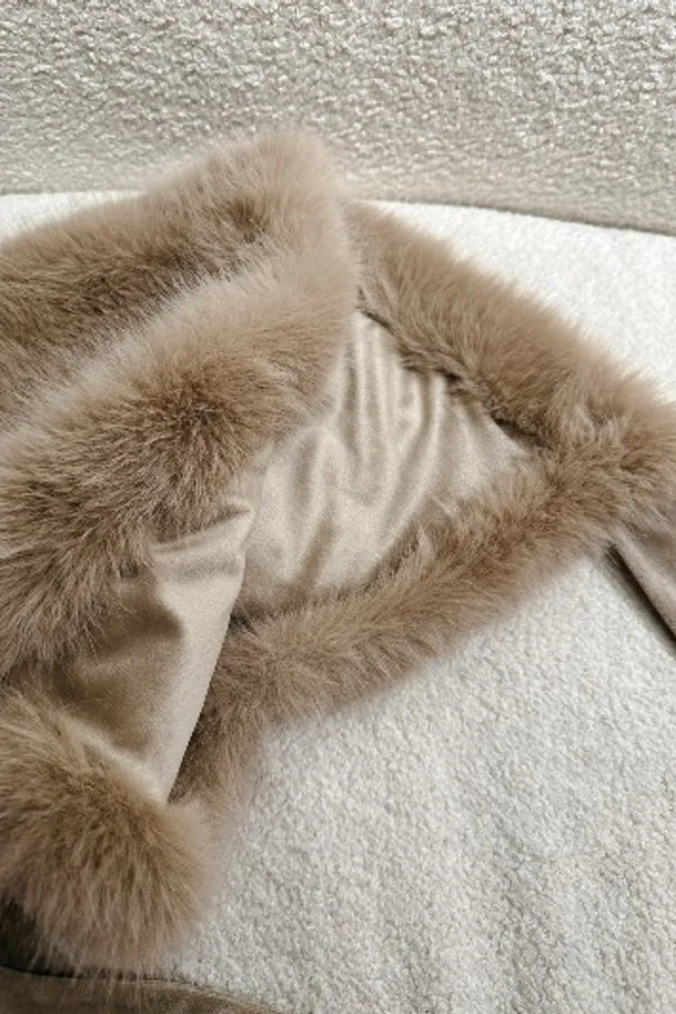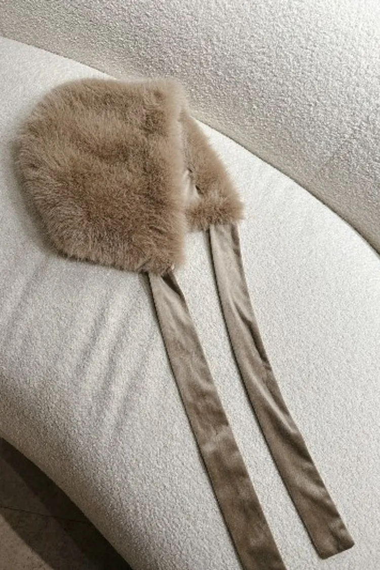 P036駝色毛毛綁帶帽