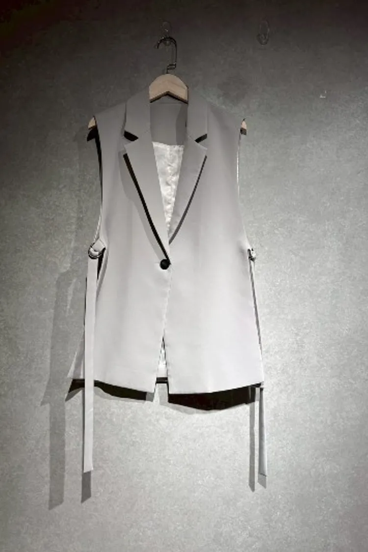 P040灰色單扣西裝背心