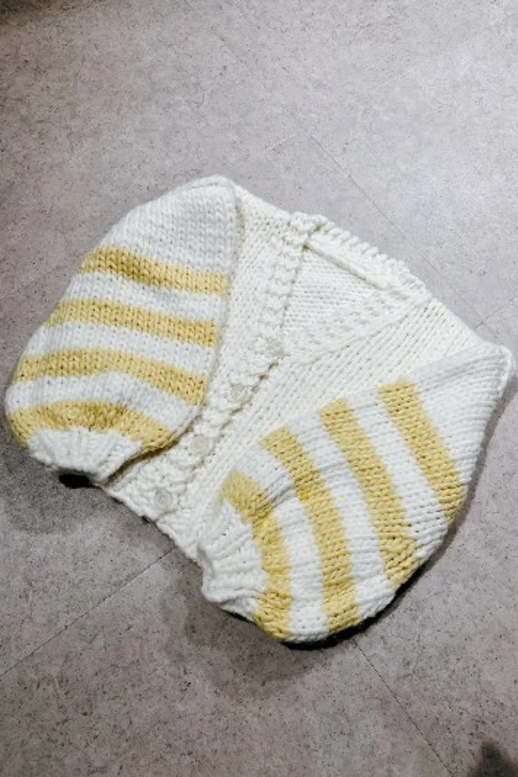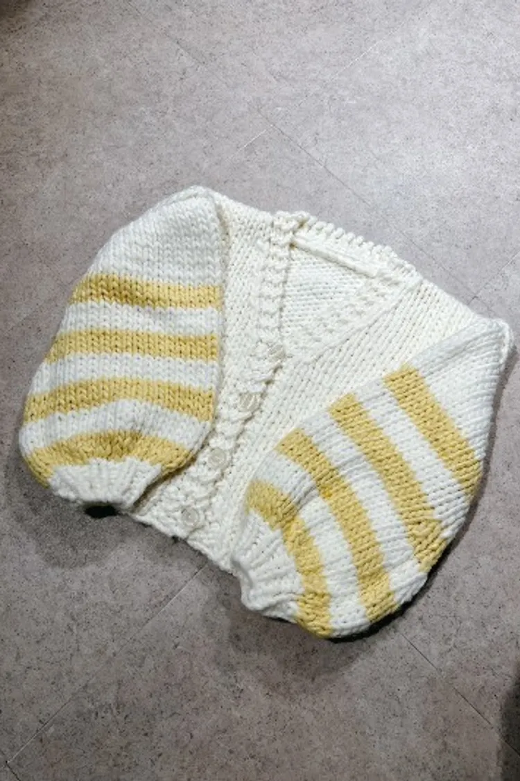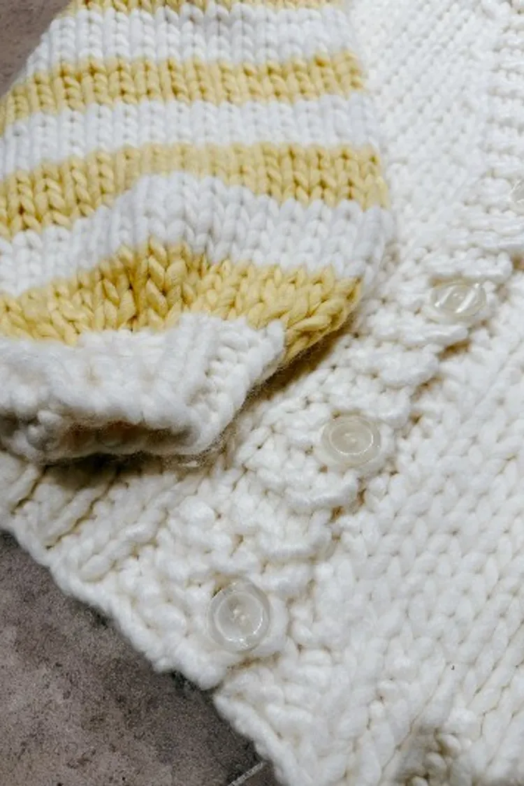 P043白黃針織袖橫條設計排釦上衣
