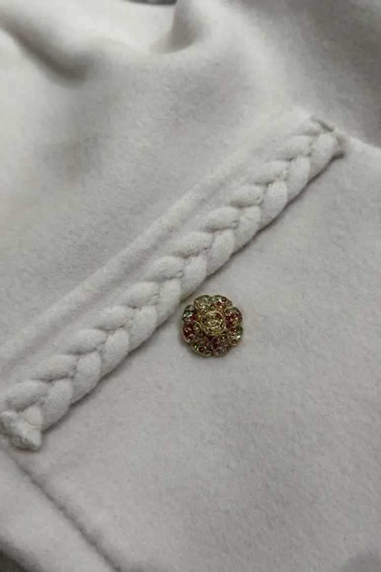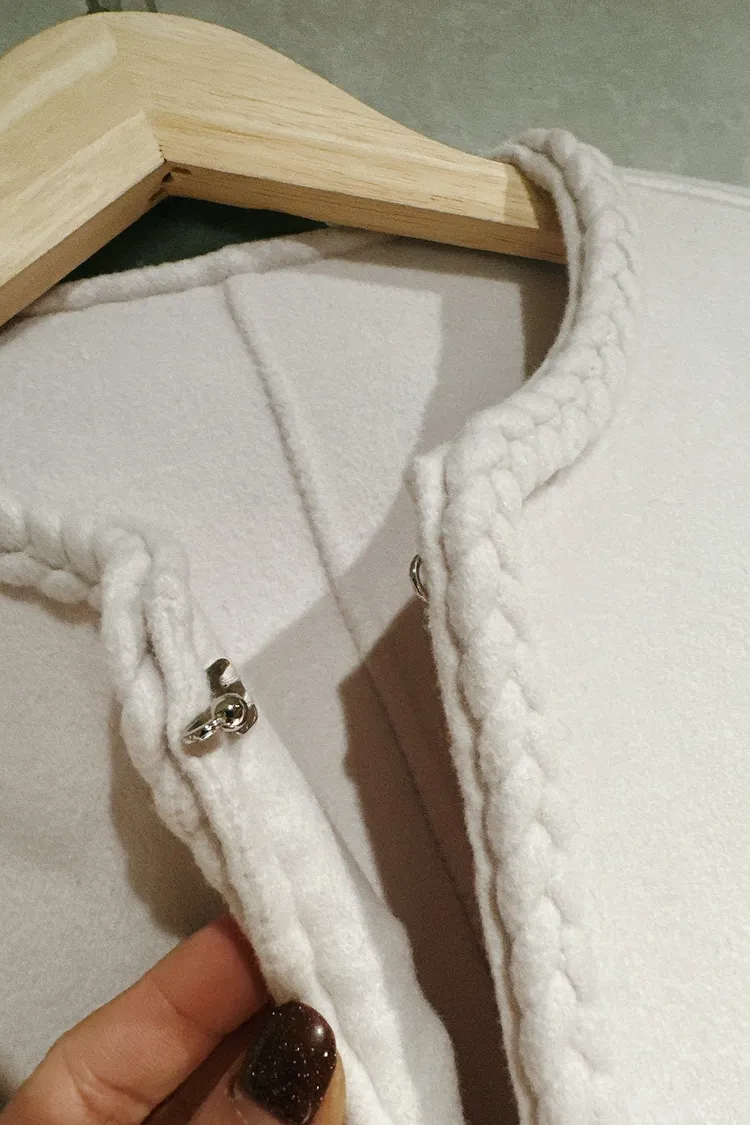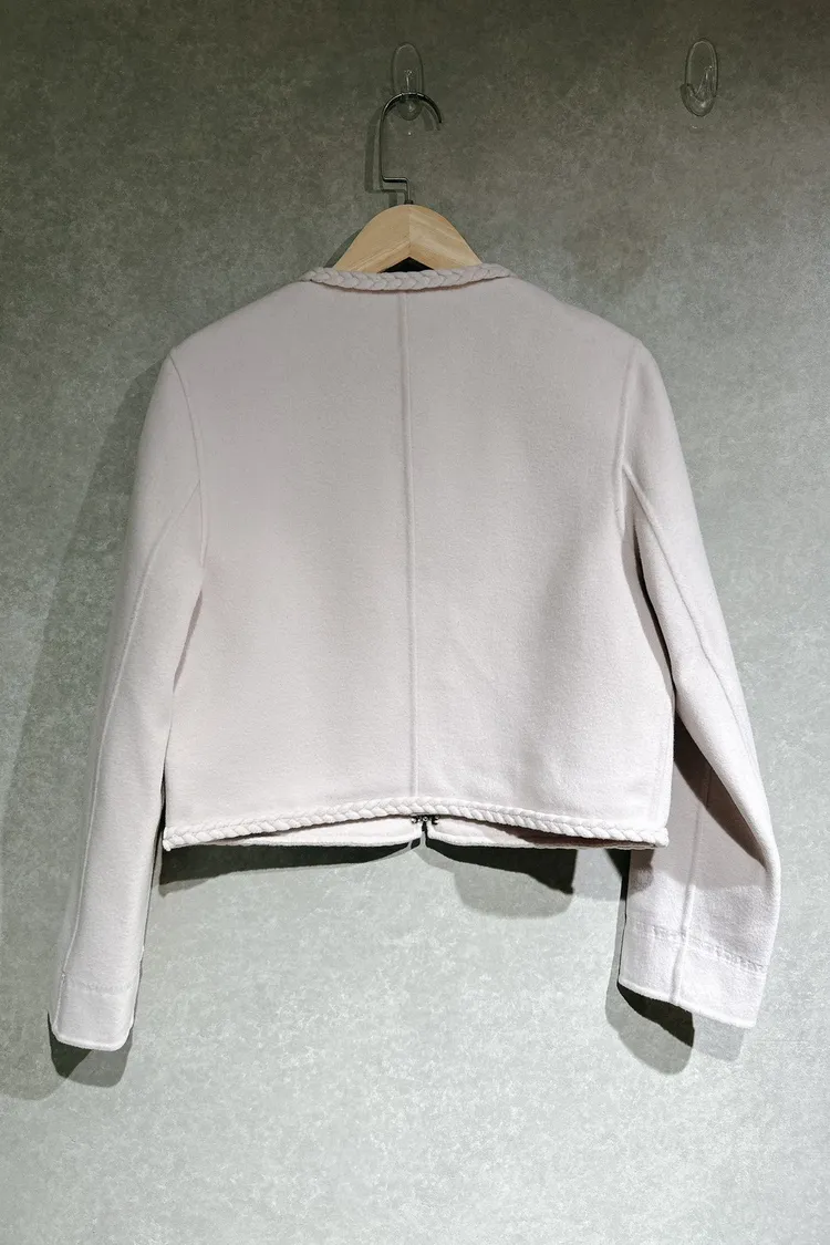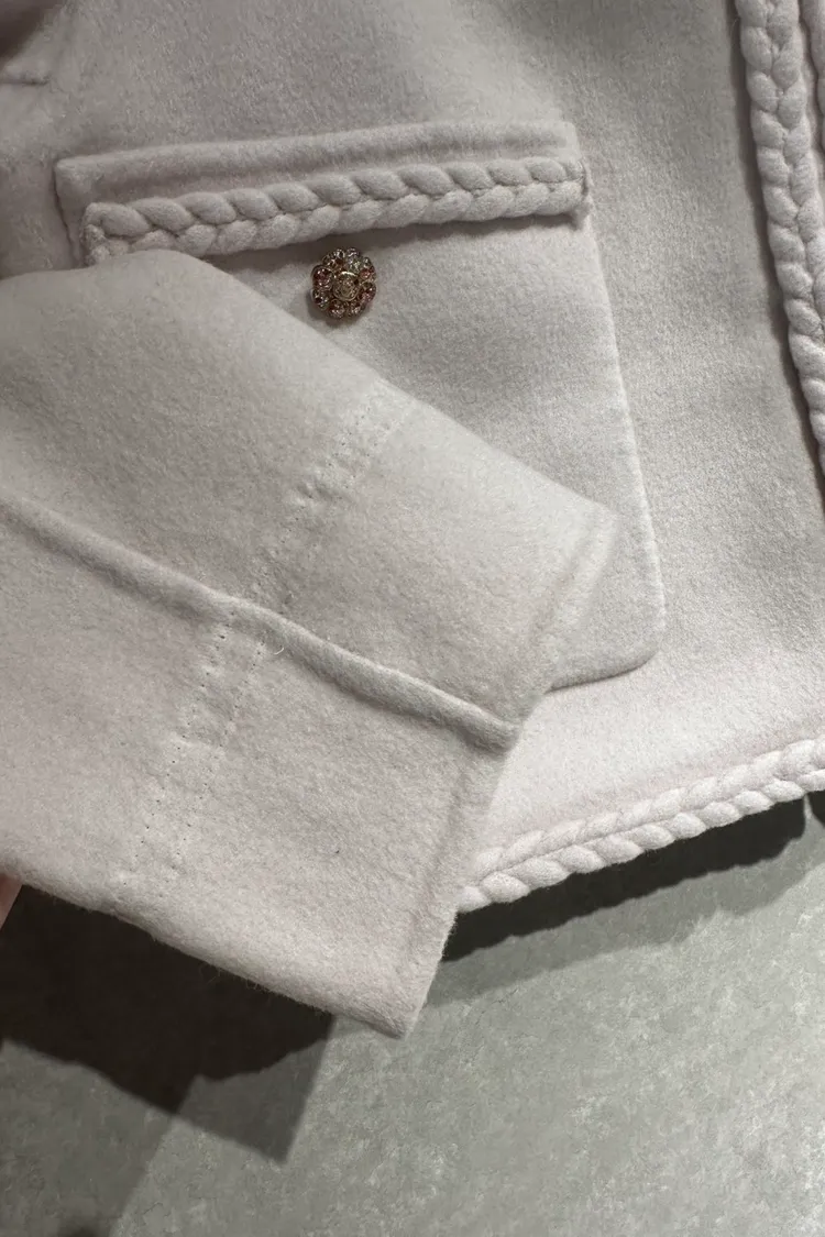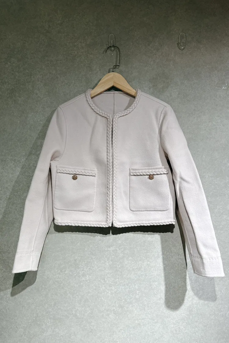P050前口袋水鑽麻花邊外套