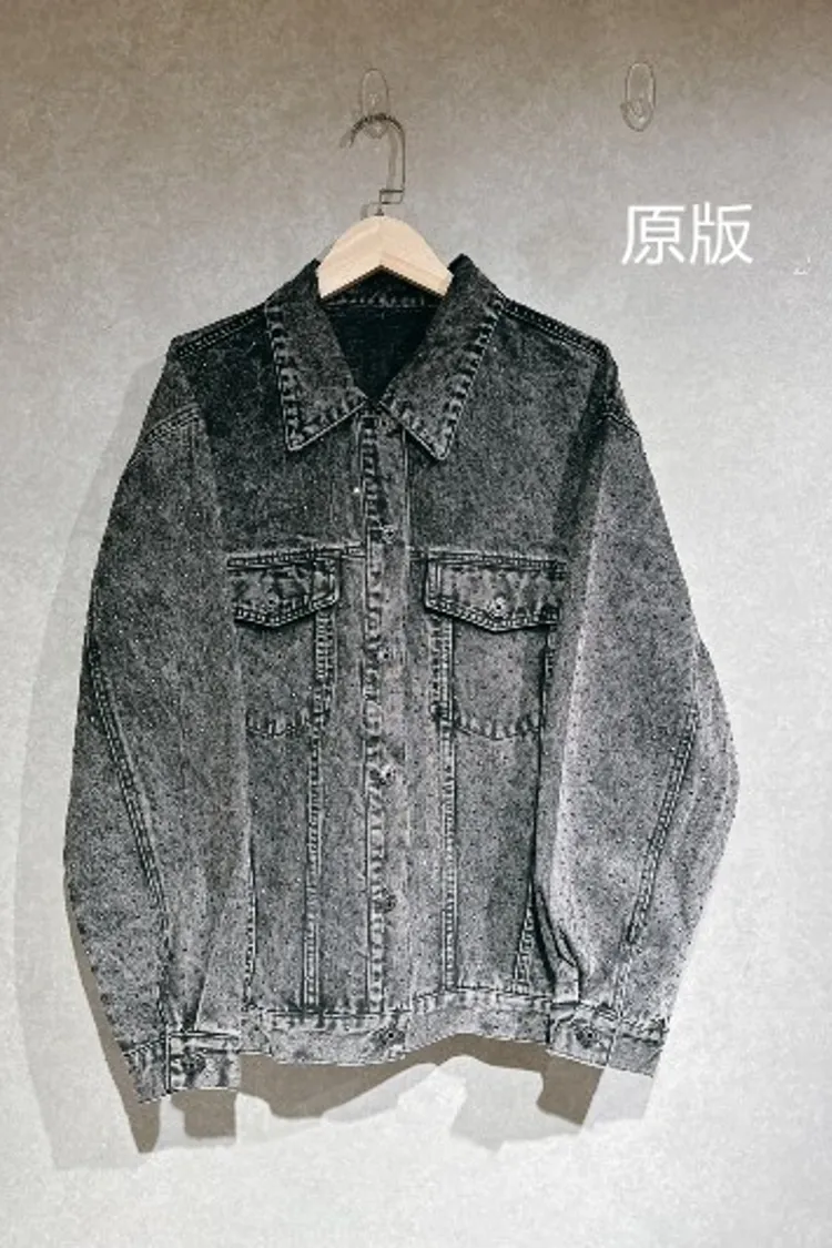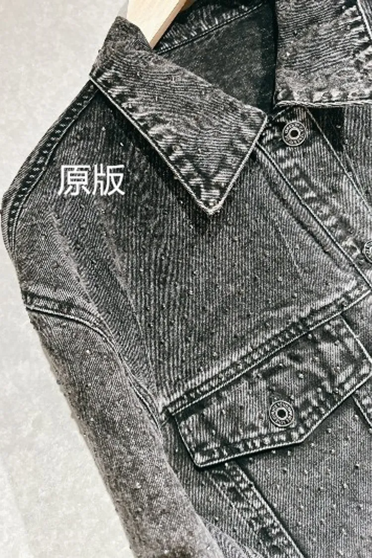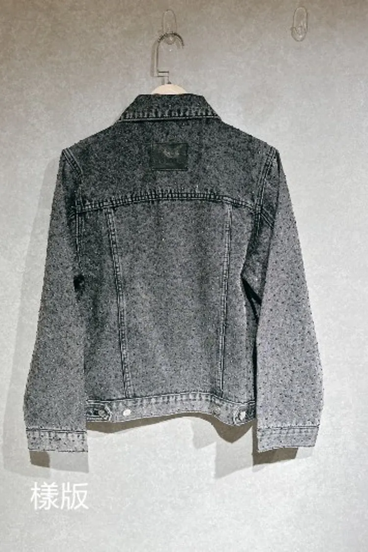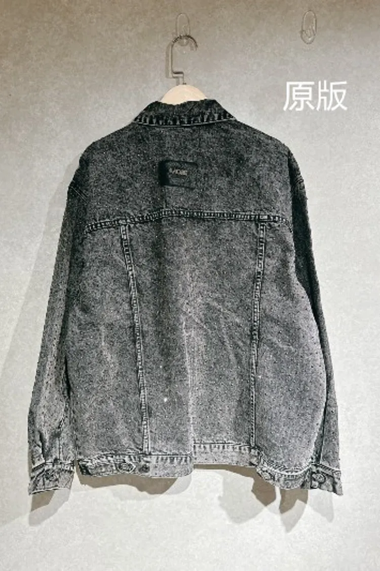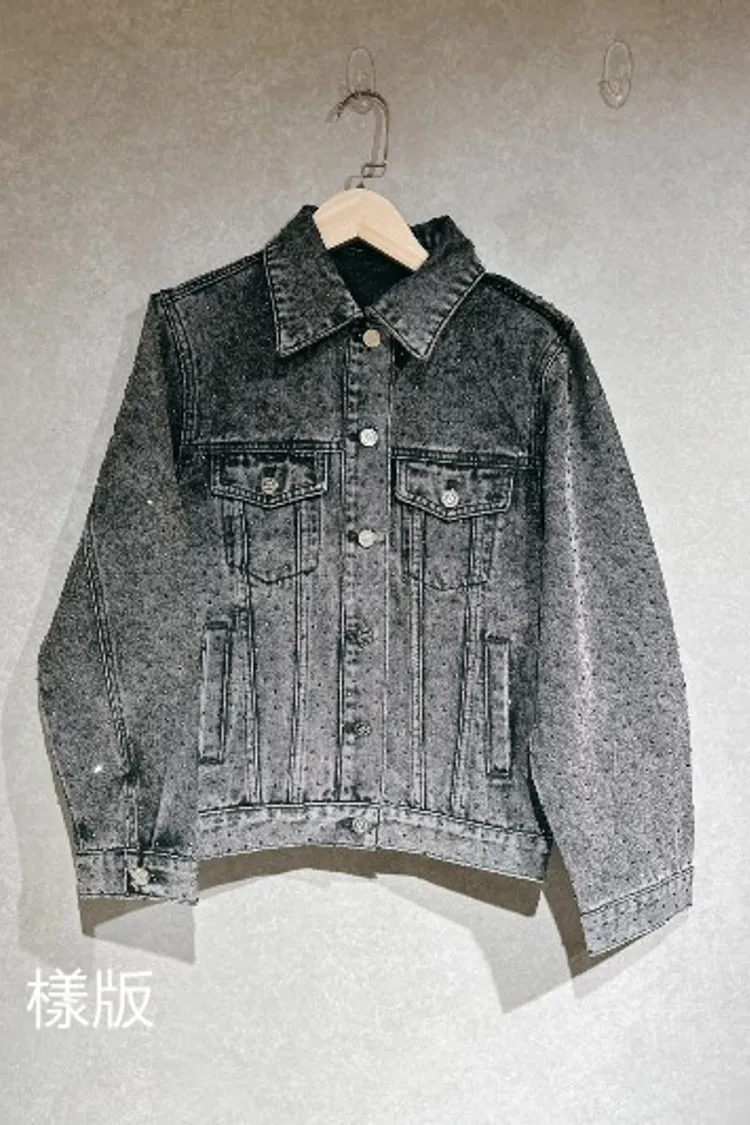 P055(自訂款)黑色水洗水鑽牛仔外套