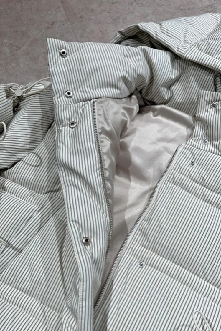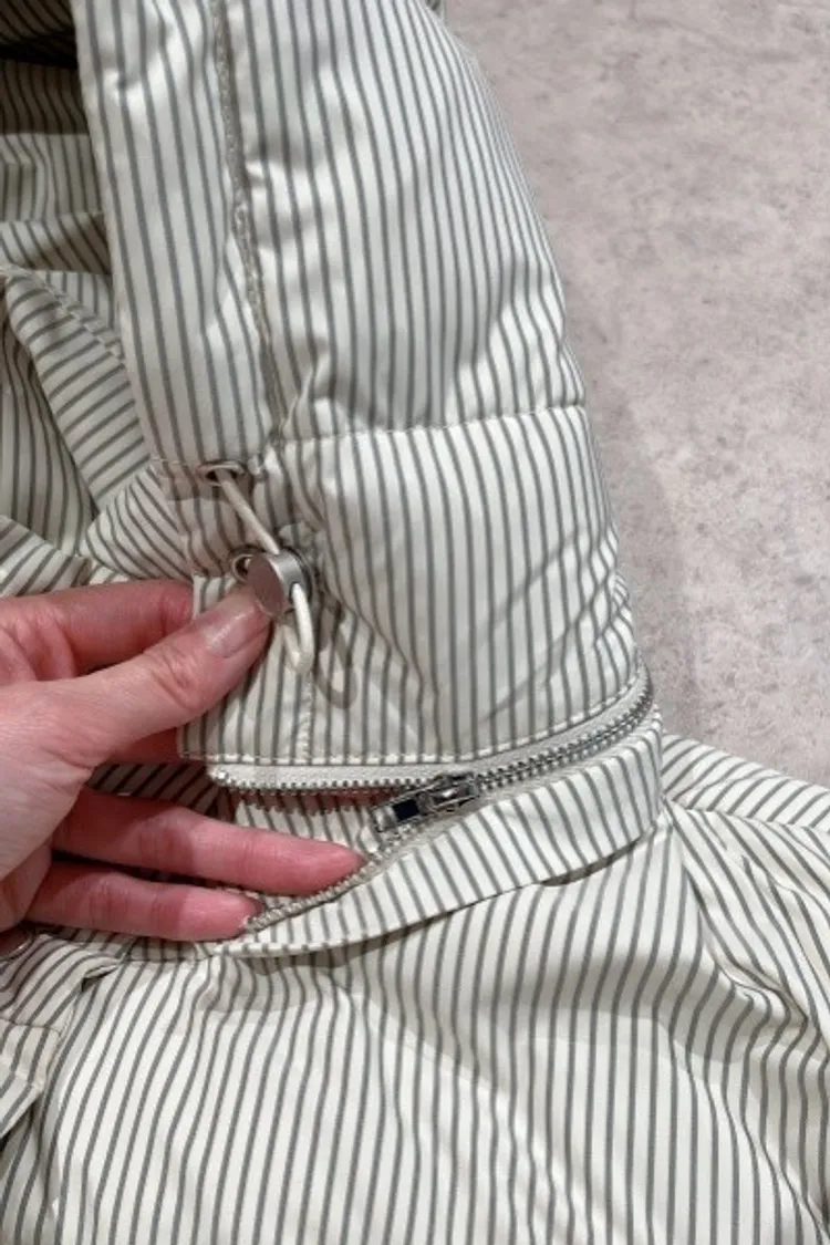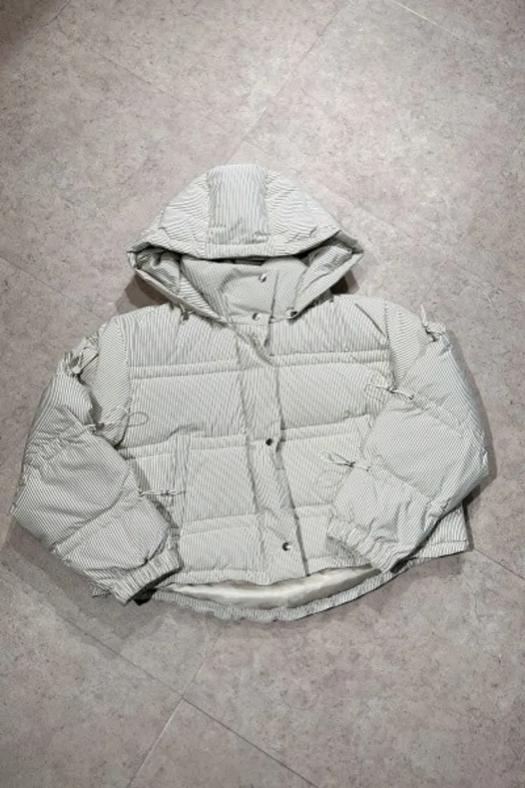 P100袖抽繩造型線條鋪棉連帽外套(帽可拆)